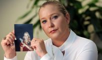 Virginia Roberts Giuffre, holding a picture of herself as a teen, exposed Jeffrey Epstein (Image: Getty)...
