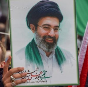 Protesters hold up picture of Ayatollah Mojtaba Khamenei. (Image: Getty) The mullahs nominally in charge More...
