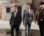 His creation, meanwhile, is seen draped in rags and furs, standing in a frozen wasteland with an old-fashioned galleon in the distance.